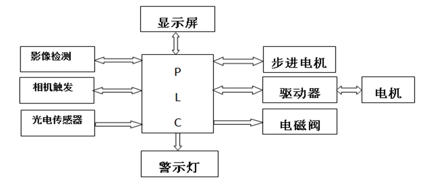 (2)顯示屏 操作人員與設(shè)備的交互對話窗口。通過與PLC實時通信,實現(xiàn)對設(shè)備工作參數(shù)的設(shè)定、運行狀態(tài)的監(jiān)控顯示、檢測結(jié)果的實時輸出、圖像檢測狀態(tài)、數(shù)據(jù)統(tǒng)計顯示等功能。